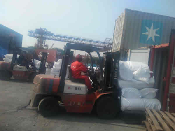 發往越南保溫項目的硅酸鋁針刺毯集港完畢,正在裝箱